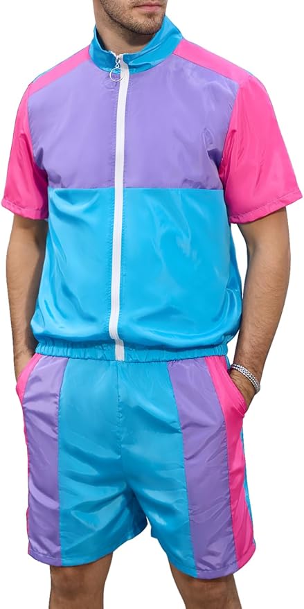 Men's 80s 90s Outfit Vintage Windbreaker Jacket Track Suit Disco Outfits Workout Set