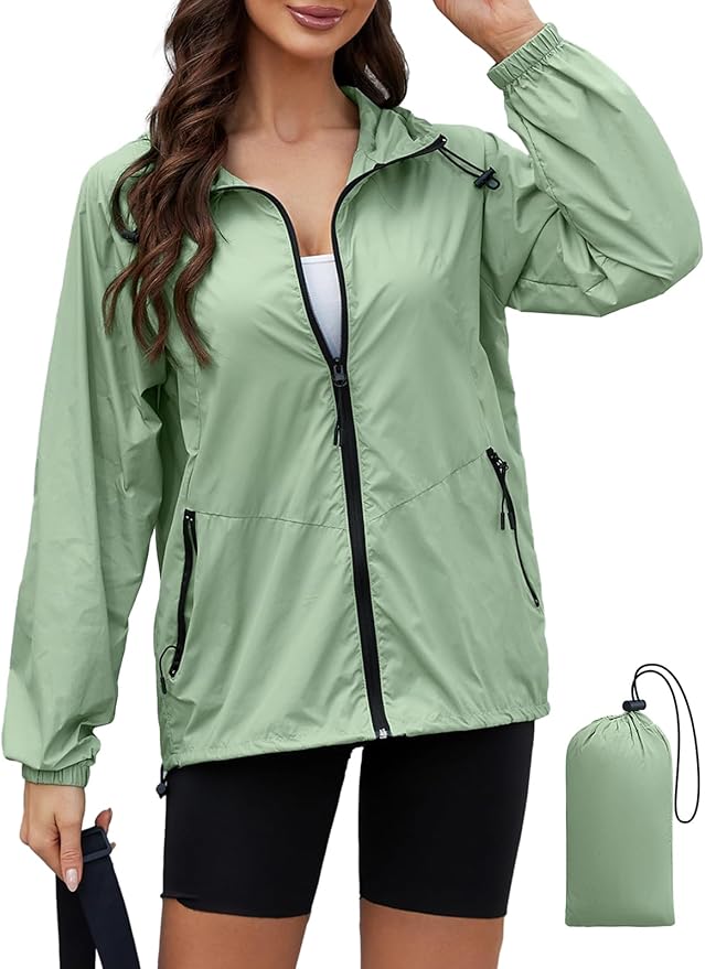 Rain Jacket Women Waterproof Lightweight Jacket With Hood Packable Raincoat With Pocket S-XXL