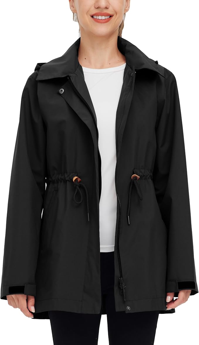 Women's Raincoats Lightweight Waterproof Windproof Adjustable Windbreaker Rain Jackets Hooded with Pockets S-XXL