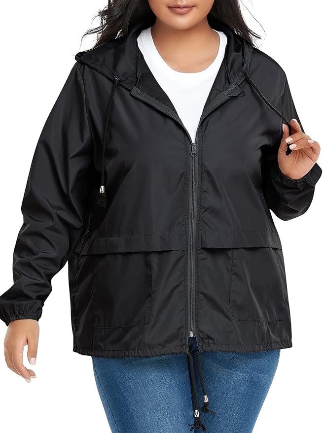 Plus Size Rain Jackets for Women Waterproof Windbreaker Jacket Women's Raincoats with Hood Lightweight Packable