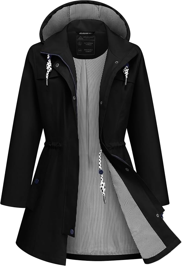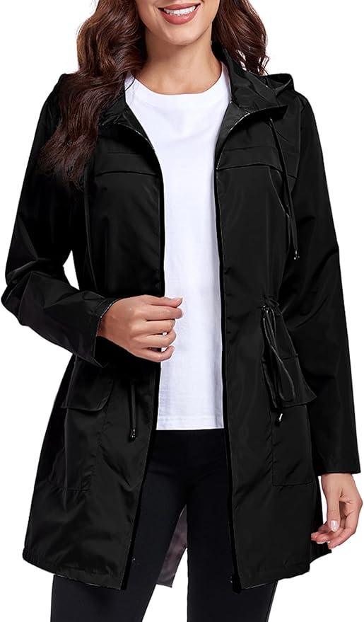 Rain Jacket for Women Long Raincoat with Hood Lightweight Windbreaker Waterproof Outdoor Trench Coat