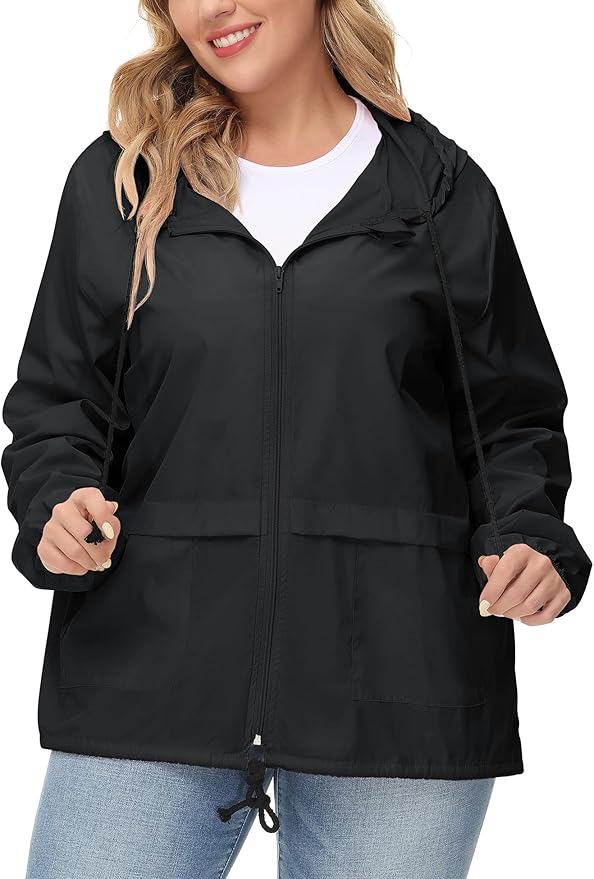 Plus Size Raincoat Women Waterproof Rain Jacket Packable Outdoor Hooded Windbreaker
