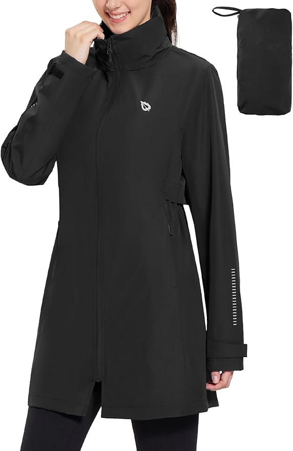 Women's Long Rain Jacket Packable Hood lightweight Waterproof Cycling Raincoat Windbreaker